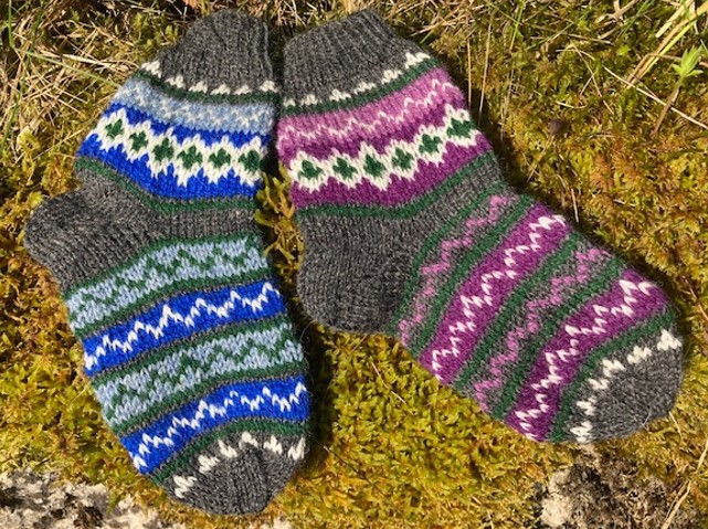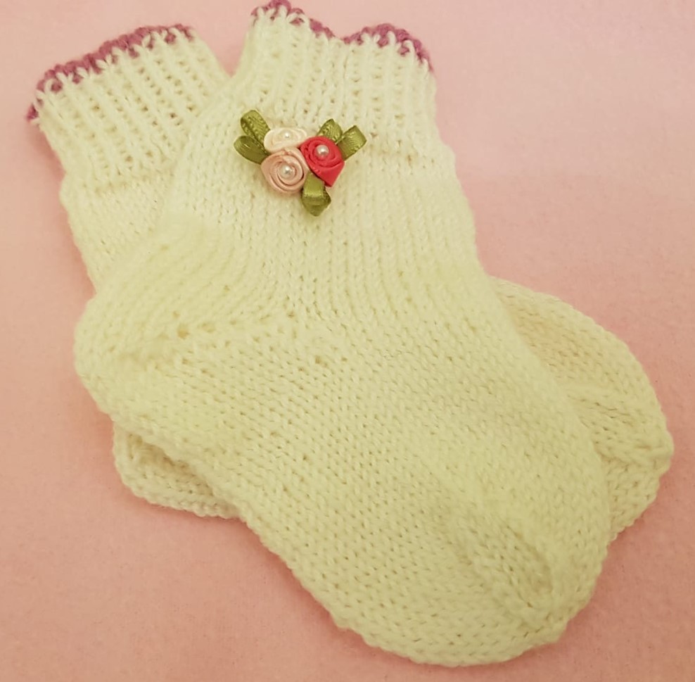 First socks for newborn babies. Knitted from 100% sock wool. Latvians consider that woolen socks not only keep the babies feet warm, but also improve blood circulation. And connect grandmothers to their grand kids :). 2019.