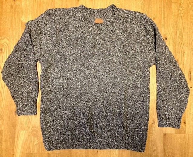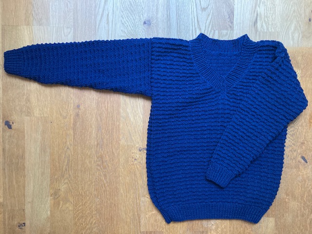 This sweater I have knitted for my brother – as a present on his 60th birthday (2022). I have used “Italian Tweed”, which is actually boucle and tweed, making it quite difficult to knit. The yarn is thick, made of wool, silk and polyester. The pattern is quite simple, as this yarn cannot be knitted in complicated patterns – it is difficult to see and difficult to knit.